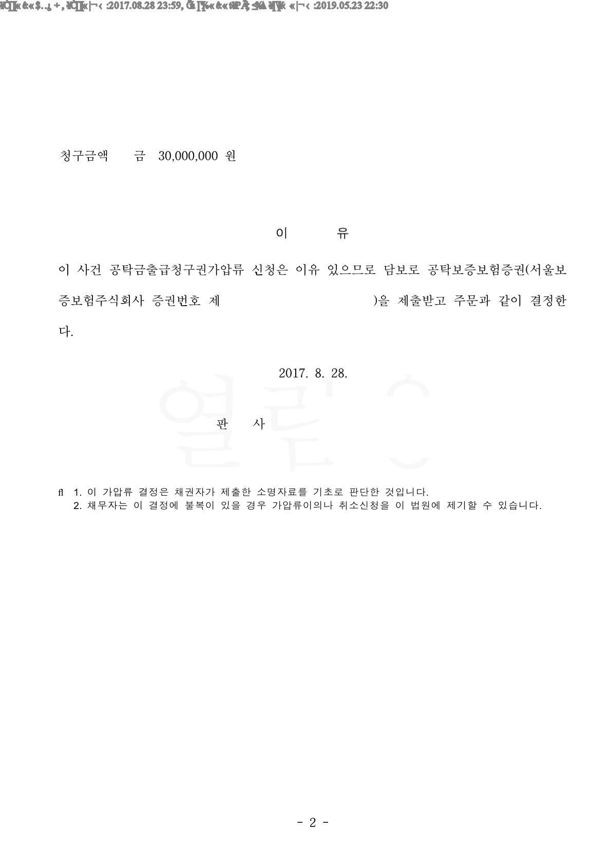 이를 바탕으로 심사가 진행되고 신청인에게 담보 제공 명령이 내려지는데요. 이때 공탁금(법령의 규정에 따라 공탁소에 맡겨 두는 돈)을 낼 수 없다면 절차는 이행되지 않습니다. 담보액은 청구금액의 1/10로 만약 채무자로부터 받아야 되는 돈이 3억 원이라면 3천만 원의 담보를 제공해야 되죠. 채권의 금액이 클수록 공탁금도 큰 규모가 되기에 이런 부분도 염두에 두고 있어야 합니다. 다만 재판부의 재량에 따라 변동될 가능성도 있으니 현재 자신이 현금을 확보하기 어려운 상황이라면 자문을 구할 때부터 공탁금을 줄일 수 있는지 확인하길 제안 드립니다. 더불어서 부동산 가압류를 위해 제출 당시 작성했던 청구 사유와 소명 방법에 대해 분명히 증명할 수 있어야 법원에서는 보전의 필요성을 인정해줍니다. 그러니 이러한 점을 명심하여 과정이 어렵고 복잡하다고 느껴진다면 조속히 법적 조력을 받는 것이 좋습니다.