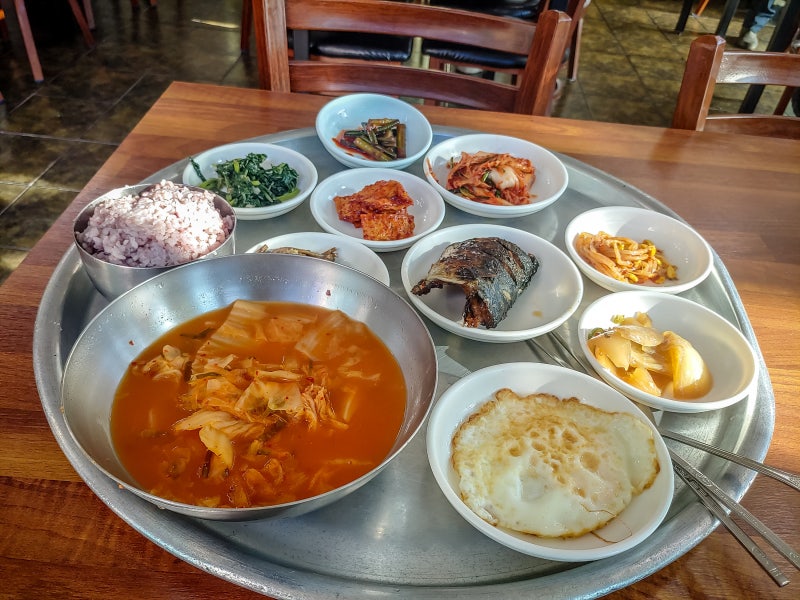 메뉴는 세트메뉴로만 되어있습니다. 그래서 항상 비슷한 식사를 하게 됩니다. 그런데 어떤 반찬은 항상 똑같이 나오기도 하고, 때로는 다르게 나오기도 합니다. 반은 고정이고 반은 가변인 것 같습니다. 이렇게 비교해서 보여드리고 싶습니다. 반찬은 항상 9가지가 있어요. 그리고 수프나 스튜가 제공됩니다. 고정메뉴입니다. 고등어가 나타납니다. 대신 가자미가 나타나는 경우도 있습니다. 계란후라이도 흔한 메뉴입니다. 또한 계란찜이 대신 제공되는 경우도 매우 드뭅니다. 김치는 맛있지만 좀 달더라구요. 어묵볶음도 평범한 요리다. 나머지는 수시로 변경됩니다. 3~4가지 종류의 수프가 번갈아 제공됩니다. 미역국, 김치국 외에 바지락국, 콩나물국, 미역국도 있어요. 밥이 푸짐하게 제공됩니다. 부족하면 조금 더 먹을 수도 있을 것 같은데, 한 번도 더 먹어본 적이 없어요. 다음 날에 먹을 반찬들입니다. 어쩌면 마트에 가서 그날 좋은 제품이 나오면 만들어 먹곤 해요. 보시다시피 음식은 집에서 먹는 것처럼 편안합니다. 특별한 것 없이 평범하게 먹을 수 있는 것들이다. 그래서 편안하게 식사할 수 있어요. 양념이 딱 적당하고 특별한 양념이나 강한 맛이 없습니다. 오늘도 내일도 먹기 좋은 음식입니다. 그래서 멀리서 와서 식사하는 것은 적절하지 않습니다. 근처에 계시는 분들은 식사하시기에도 좋을 것 같아요. 일요일에는 영업하지 않고, 저녁에도 영업을 하지 않습니다. 주의하시기 바랍니다. 아 그리고 가격은 6,000원이에요. 카드도 가능하지만 500원을 더 내셔야 합니다. 사람들이 이것에 대해 너무 많이 말하지 않기를 바랍니다. 그에 비하면 정말 좋은 가격이에요. 부산 중구 대교로 115 정식 맛집