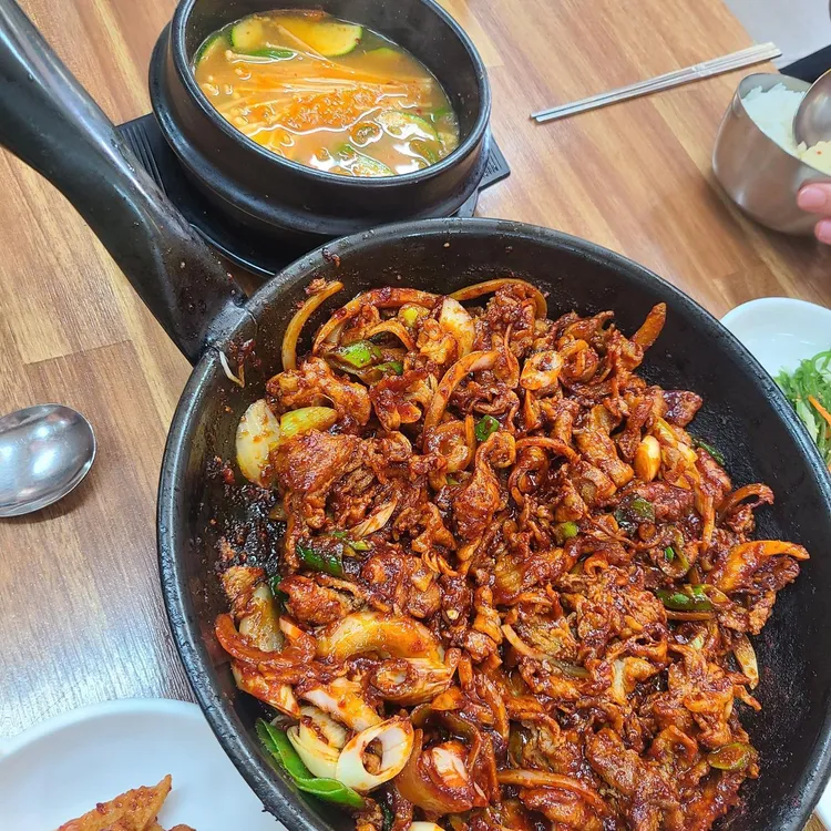 식당 입구부터 연예인 사인들이 줄지어 서있습니다~~~~~~ 식당에 들어가니 4인용 테이블이 6개 있어요! 12시가 되니 벌써 만석! 사장님, 어디 계시나요!!!! ㅠㅠ계단으로 올라가면 자리가 또 있어요! 1층에 자리가 없으면 신발을 벗고 2층에 앉으세요! 우와!!! 1층 레스토랑으로 입장! 셀프 반찬 바! 준비가 된! 반찬이 부족해요! 여기를 채워주세요! 하하, 단연 최고입니다! 불백정식으로 주문해주세요!! ㅎㅎ 물셀프! 추가 반찬도 셀프로 드실 수 있어요! 밥 추가시 1,000원! 연예인 싸인이 벽을 가득 채웠어요!!!! 감독 이준익, 박정민, 김주혁, 유노윤호, 김정태, 유준상, 코요태 등 불백정식(10,000원/인) _ 2인분 주문제작 레스토랑이라 음식이 확실히 빨리 준비되더라구요!! 불백의 비주얼을 보자마자 젓가락을 집으러 달려가게 될 것 같아요! 하하, 매워요! 너무 맛있는 불백! 고기가 많이 들어있어서 인색하지 않아도 돼요! 100점 만점에 100점!!! ㅎㅎ 고기가 많은데 여기는 살코기가 꽤 많아요! 그래서 내 입에 딱! 좋은!!! ㅎㅎ 빨간 소스에 비해 그렇게 맵지는 않으니 놀라지 마세요! ㅎㅎㅎ 불백정식_ 돼지불고기+된장찌개+밥은 광고 이후 계속됩니다. 다음 주제 작성자 취소 부산 루머 불백 재생 0 좋아요 0 좋아요 공유 0:00:00 재생 음소거 00:00 00:00 실시간 설정 전체 화면 해상도 currentTrack 자막 비활성화 재생 속도 NaNx 해상도 자막 설정 비활성화 옵션 글꼴 크기 배경색 재생 속도 0.5x 1.0x(기본값) 1.5x 2.0x 알 수 없는 오류가 발생했습니다. 도움말이 음소거되었습니다. 도움말 라이센스 이 영상은 고화질로 재생할 수 있습니다. 설정에서 해상도를 변경해보세요. 자세히 보기 0:00:00 Collapse/Expand부산의 명물 불백_부산의 명물 불백정식부산의 명물 불백 #초량 가볼만한 곳 #초량명소 #명명불백 #부산명물불백 #초량불백 #초량명물불백 #초량맛집 #돼지불고기 # 불백 정식 #초량돼지불백 기본요리 _ 고추장볶음, 어묵, 미역, 바다달팽이 기본요리 _ 콩나물양념, 무나물, 김치 기본요리 _ 상추, 고추, 마늘, 쌈장 불백은 환상의 조합 양파와 고기가 적절하게 섞여있어요! 삐뚤어진 프라이팬이 더 맛있어보이네요… . ㅎㅎ 뭐죠.. 1차 _ 상추에 꼭! 감사합니다! 너무 맛있어요. ㅎㅎ 2차_ 밥이랑 비비면 더 맛있어요! 하하, 이게 뭐죠? 공지밥은 고봉밥이에요! ㅎㅎ 된장찌개도 같이 나오네요! 내 입맛에 딱! 두부, 호박, 양파, 팽이버섯까지! 모든 것이 들어있는 된장찌개! ㅎㅎ 그 유명한 불백을 몇년만에 방문했어요! 그때 먹었던 그 맛! 그대로 남아있어서 더욱 기뻐요! ㅎㅎ 기사님들을 위한 24시간 식당으로 유명한데, 단골손님이 더 많았어요! 불백으로 유명한 집! 부산역과 매우 가까워서 정규식사가 그리우시다면 정말 좋아요! 찐! 분명히! 한번 시도해 보시길 권합니다! ㅎㅎㅎ ——————–★메뉴 ★——————-24. 1. 2 기준 50m NAVER Corp. 더 보기 /OpenStreetMap 지도 데이터 x NAVER Corp. /OpenStreetMap Map Controller Legend Real Estate 산오리읍, 도청 구시군 동시 부산광역시 동구 초량로 36 주소 : 부산 동구 초량로 36 주차 : 가능 (식당 앞 공영주차장 이용 / 현금 결제시 2인 주차권 1매) 마켓) 영업시간 : 24시간 (00:00~24:00) 전화 : 051-464-0846 단체 이용 가능