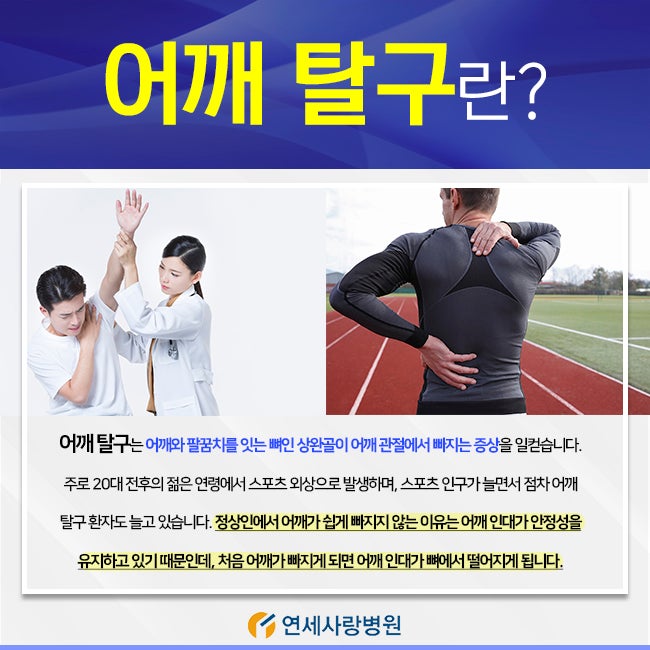 누구에게나 생길 수 있는 일인 탈구는 뼈가 약한 신생아에게 쉽게 일어나기도 하고 갑작스러운 자극을 받은 사람에게 발생할 수도 있습니다. 이를 방지하기 위해 꾸준한 운동으로 튼튼한 뼈와 근육을 만드시고 무언가를 하기 전에 다치지 않게 충부난 스트레칭을 필수로 해주시길 바랍니다!