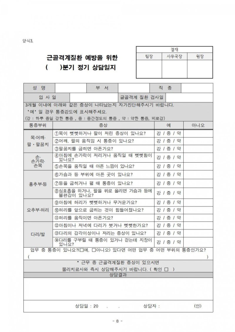 근골격계 질환의 증상은 무엇입니까? – 근육통 – 체형의 불균형 – 감각 마비 및 운동 범위 감소