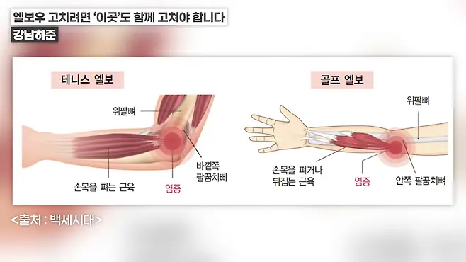 주먹을 세게 쥐거나 손목 관절을 사용해야 할 때 팔꿈치에 통증과 저림 증상이 느껴진다면 팔꿈치 질환을 의심해 볼 수 있다. 테니스엘보는 외측상과염으로 팔꿈치 관절 바깥쪽에 염증이 생겨 팔을 구부리거나 펴면 통증이 나타나는 질환이다. 또한, 골프엘보는 내측상과염으로 팔꿈치 관절 내부에 염증이 생겨 손바닥을 뒤집을 때 통증이 나타나는 질환이다. 팔꿈치질환, 어떤 증상이 있나요?