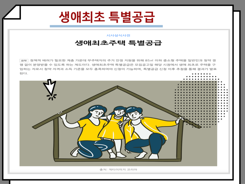 #생애특별공급 주택 구입을 위한 청약제도 중에 생애 첫 특별공급이 있습니다. 말 그대로 생애 처음으로 집을 구입하는 사람에게 우선권을 주는 제도다. 누구나 주택 구입에 대한 희망을 갖고 있습니다. 주택 보유 이력이 없을 경우 낙찰에 더 유리할 수 있습니다.