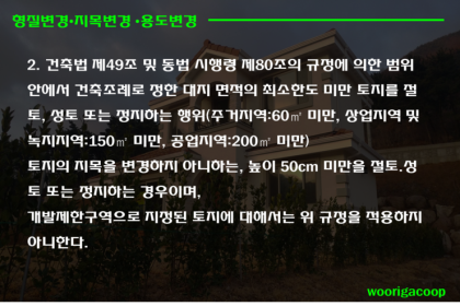 원하는 대로 모양을 변경한 후 다음 단계는 아트보드 사용 방법을 결정하는 것입니다. 이에 따라 용도변경을 하고 건축허가를 받아 절차를 마치면 새로운 토지이용기준을 등록하게 되는데, 이는 지적대부에 등록된 분류기준을 변경하는 업무이다. 토지변경, 용도변경, 토지이용변경 등의 과정을 마치면 토지의 가치가 상승하고 이에 따라 취득세가 추가로 부과됩니다. 따라서 추가 세금을 납부하고 추가 비용을 준비해야 할 수도 있다는 점을 염두에 두시는 것이 좋습니다.