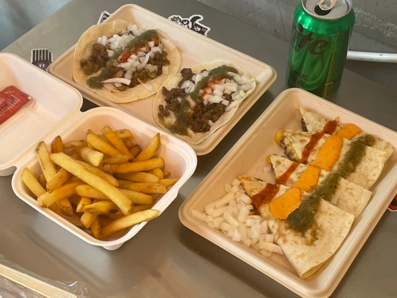 카운터에는 TV에서 보던 민재가 있었다. ㅎㅎ 저는 별로 신나는 성격이 아닌데 그냥 머글인 척 하고 가서 주문했어요. 내부는 주인장의 운동 취향이 반영된 사진들로 채워졌고, 벽은 스트리트 스타일 스티커로 가득 채워져 있었다. 그것은 붙어 있었다. 제가 갔을 때는 방송 중간쯤이라 사람이 많지 않아서 기다리지 않고 먹었습니다. 평일 점심에는 인근 직장인들이 자주 오는 것 같았고, 사원증을 착용한 분들도 꽤 많았어요! 모든 메뉴는 양념 돼지고기 또는 쇠고기 중 선택 가능합니다. 나성나초 나초의 양이 엄청 짠 편이고 고기 위에 올려서 먹어도 맛있어서 배불리 먹었어요. 마지막에 나쵸가 나왔는데 고기가 없어서 그냥 나쵸만 먹었습니다. 영화를 보면서 맥주를 마셨다. 먹기 딱 좋을 것 같아요… 집이랑 가까웠으면 저녁으로 테이크아웃해서 먹었을 것 같아요. 기본적인 추가 소스를 가져다가 카운터 옆 공간에서 드실 수 있습니다. (위) 나성타코… 타코가 이렇게 작은줄 모르고 한개만 주문했는데 4개를 시켜도 둘이서 맛있게 먹었을 것 같아요 ㅋㅋ (아래) 퀘사디야와 메이트의 나성타코. 제가 선택한 메뉴는 퀘사디야인데 세 가지 메뉴 중 가장 맛있었습니다. 이상하게 중독되는 맛… ..사실 저희 둘 다 푸드파이터라서 점심으로 먹을 음식이 부족했는데… 간식 같은 느낌… ? 그런데 뭐… 배부르지 않고 적당히 배불리 먹어서 좋아요! ★3.9전체적인 맛은 느끼하지 않고 맛있지만 특별하지는 않습니다. 서울시 마포구 잔다리로2길 24 나성타코 2층
